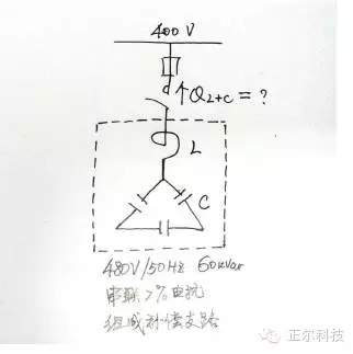 例:補償支路采用額定電壓為480V,額定功率為60kvar的電容器,應用于400V系統(tǒng)中。