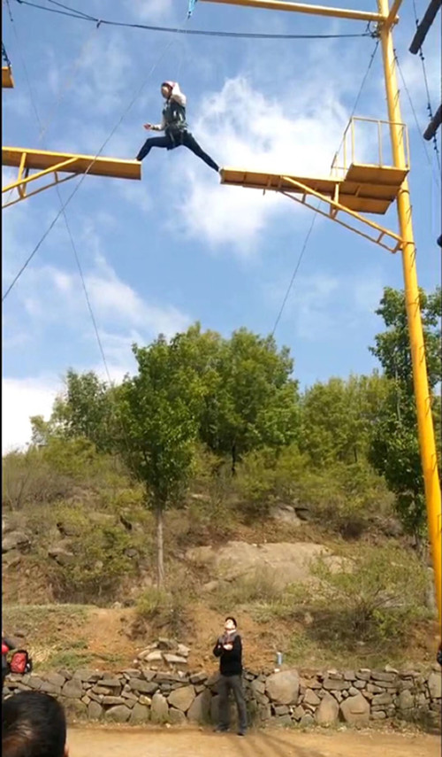 此次團(tuán)隊(duì)建設(shè)項(xiàng)目中最令人激動的就是高空斷橋,是一項(xiàng)極具個人挑戰(zhàn)性的項(xiàng)目,九米的高空上有一座中間斷開約1.5米的木板“橋”,你需要從橋的一端跳到另一端,在平地上我們隨時可跨越過的坎坷,到了高空會有另外一種感覺,恐高的心理,搖晃的木板,與我們生活中的各類阻礙何其相似,而我們怎么樣邁出這一突破性的一步呢?突破自我心理極限,體驗(yàn)如何正確面對困難,感受高空一小步,人生一大步的真諦,建立換位思考意識。